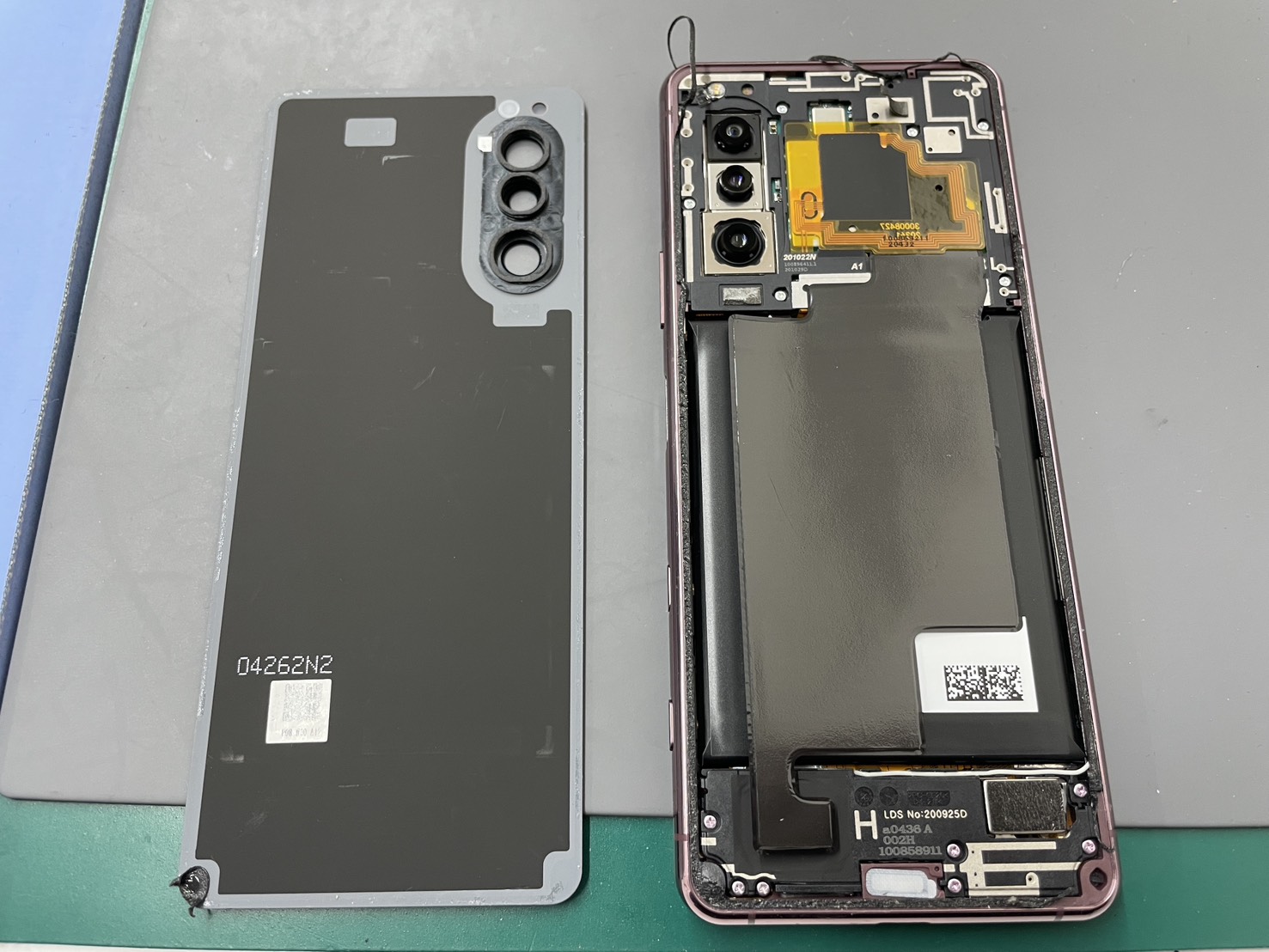 Xperia 5 IIは背面パネルを取り外して内部にアクセスする構造です。