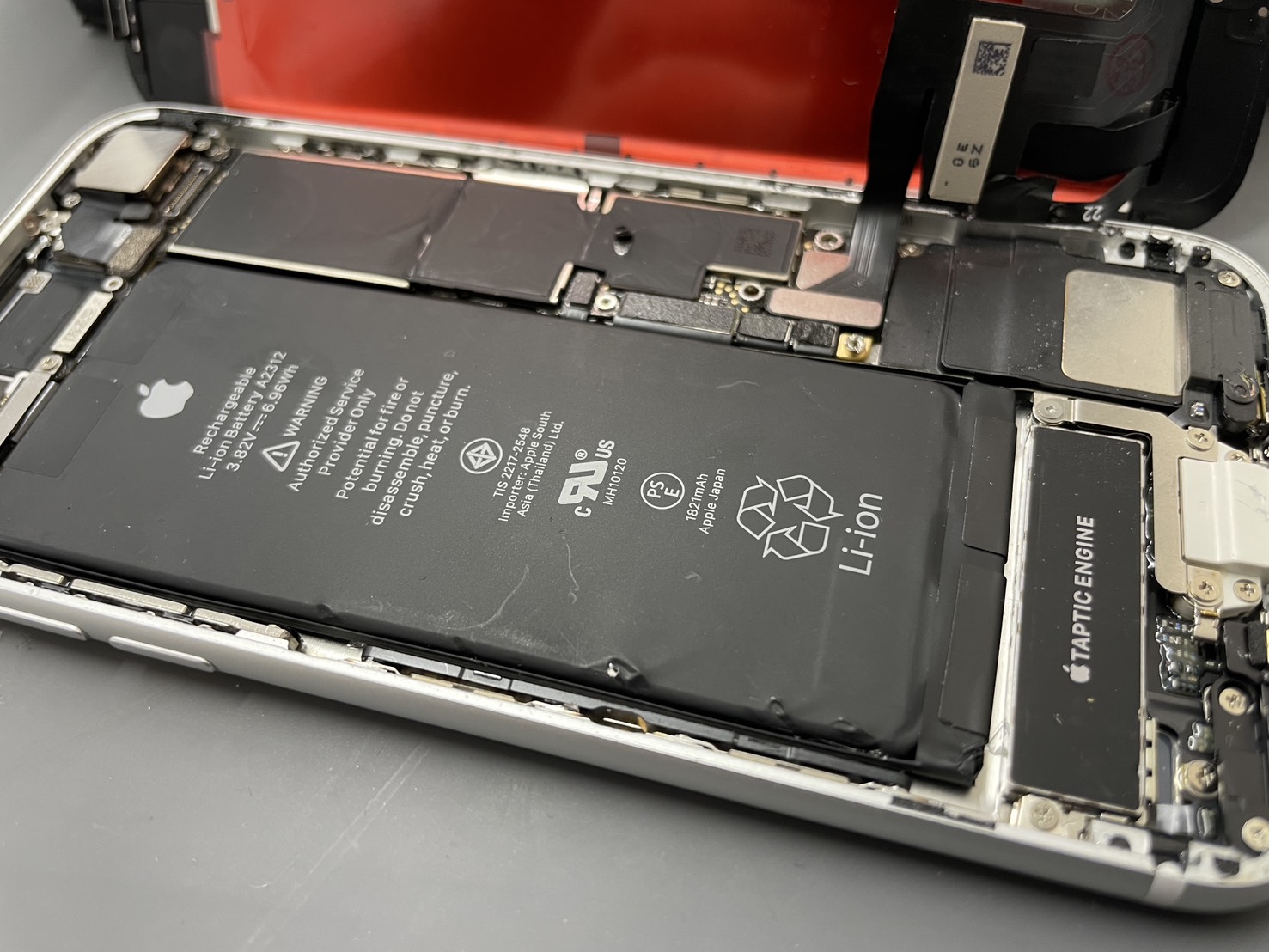 さらに分解確認の結果、近接センサー/ホームボタン(HB)周辺の断線